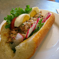 By the time we got our sandwiches and paid, a few seats at the communal table in the back had opened up. We sat down and ogled our sandwiches. Actually the whole table ogled them and asked us what we had ordered. I got out my camera and the couple across the table asked if we were tourists. I sheepishly shook my head and tried to explain about my obsession with food and my blog, but most people don’t get it.